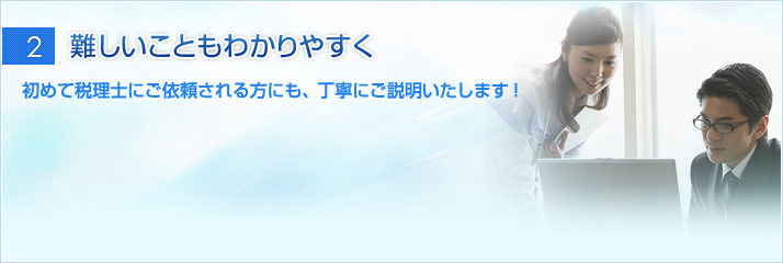 新しく会社を立ち上げる方、とくに若い方には、税務に関してわからないことが多いと思います。 当事務所は「難しいこともわかりやすく」をモットーに、帳簿の付け方から数字の見方・読み方に至るまで、経営に必要な知識を初歩から親切・丁寧にアドバイスいたします。会社が成長していくためには、やはり数字の意味が読め、それを経営に生かすスキルが欠かせません。当事務所は、公認会計士事務所として一部上場の会社はもちろんのこと、個人事業主として起業される方に至るまで、よきアドバイザーとして、継続的に丁寧にサポートいたします。